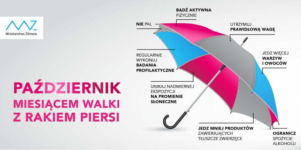 Październik to miesiąc walki z rakiem piersi. Kobiety mogą zrobić wiele, aby uniknąć nowotworu lub wcześnie go wykryć. Służą temu badania mammograficzne, od wielu lat finansowane przez Narodowy Fundusz Zdrowia w ramach programu wczesnego wykrywania raka piersi. Równie ważne są zalecenia Światowej Organizacji Zdrowia wskazujące na wybór stylu życia, a także rekomendacje Ministerstwa Zdrowia i Narodowego Programu Zwalczania Chorób Nowotworowych. Wszystkie wytyczne znajdują swoje potwierdzenie także w Europejskim Kodeksie Walki z Rakiem. Regularne wykonywanie badania mammograficznego pozwala wykryć zmiany nowotworowe na wczesnym etapie choroby, gdy możliwe jest jej skuteczne leczenie.Celem programu jest zmniejszenie liczby kobiet, które umierają na raka piersi.