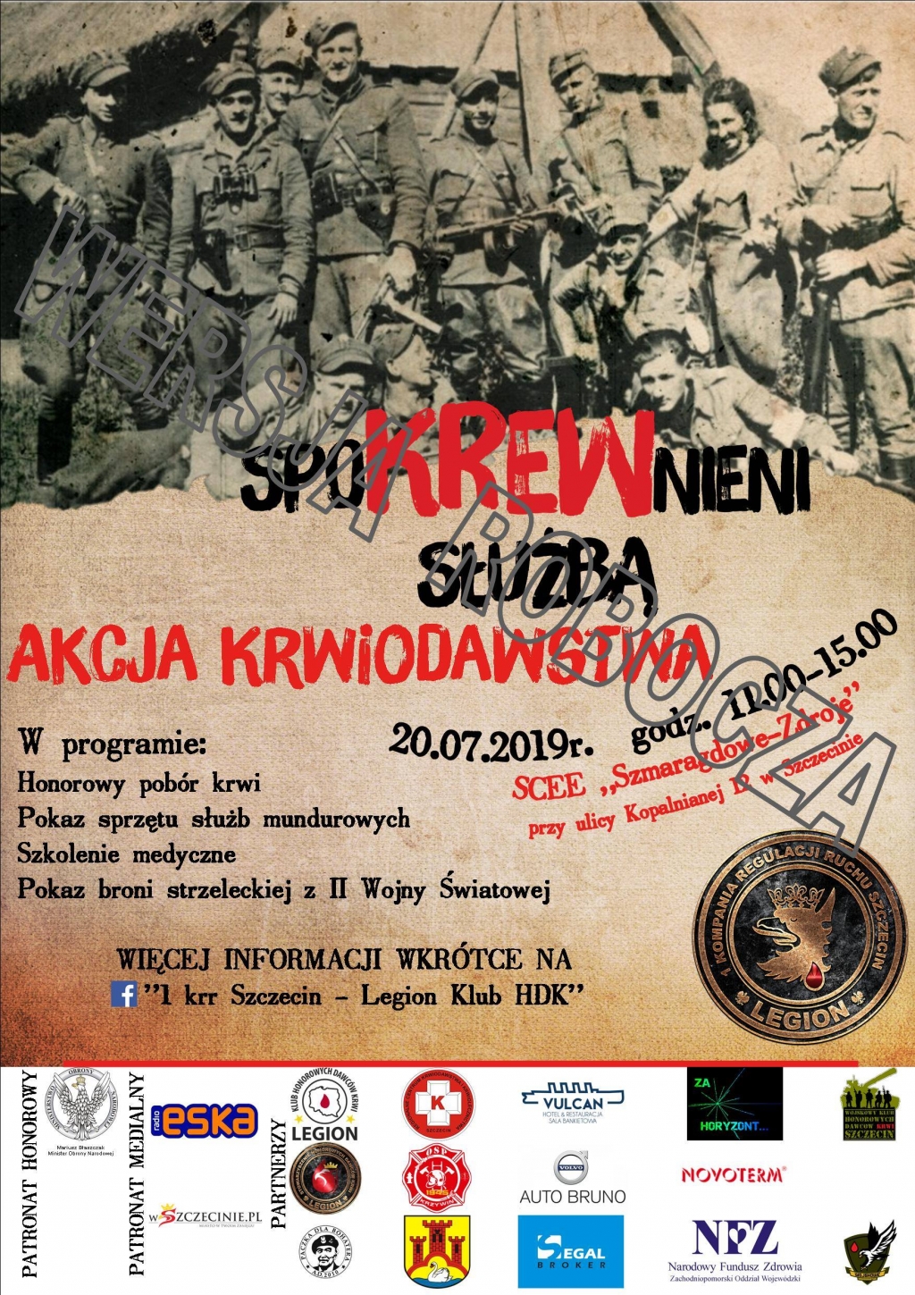 Wydarzenie organizuje Wojskowy Klub Legion HDK oddział przy 1 krr Szczecin oraz Regionalne Centrum Krwiodawstwa i Krwiolecznictwa w Szczecinie. Każdy, kto tego dnia wybierze się na spacer nad Jezioro Szmaragdowe, będzie mógł zostać honorowym dawcą krwi. Trzeba tylko pamiętać, żeby koniecznie zabrać ze sobą dowód osobisty.