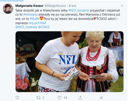 Po pierwszym wypadzie na dożynki do Malechowa w powiecie sławieńskim, mobilny ZOW NFZ szykuje się do wizyty w starostwie powiatowym w Koszalinie. W środę, 11 września, w godz. 8-11, razem z CSIOZ, przy okazji szkolenia lekarzy z e-recepty, zapraszamy wszystkich zainteresowanych aktywowaniem Internetowego Konta Pacjenta. Powiemy co i jak trzeba zrobić, by korzystać z dostępu do swoich danych gromadzonych w cyfrowym systemie