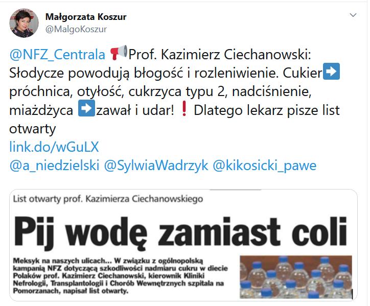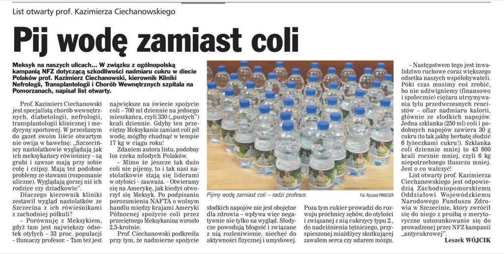 - Kurier Szczeciński. Pij wodę zamiast coli. List otwarty prof. Kazimierza Ciechanowskiego otwórz >>>