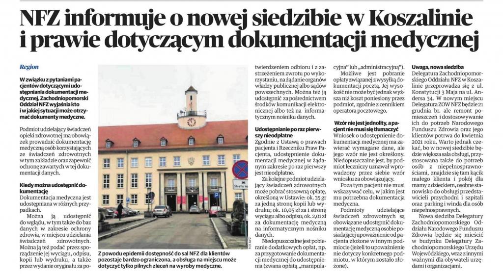 • NFZ informuje o nowej siedzibie w Koszalinie i prawie dotyczącym dokumentacji medycznej – Głos Koszaliński >>>