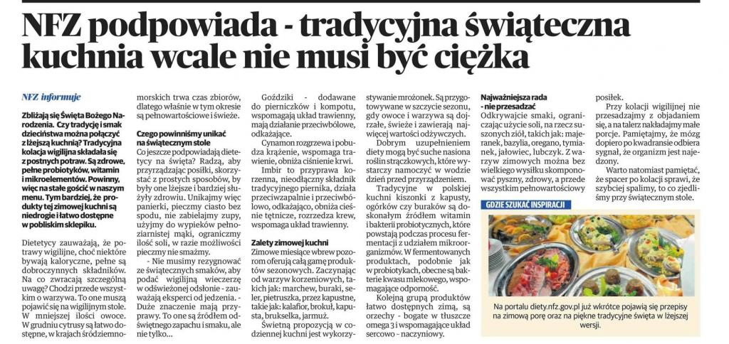 • NFZ podpowiada - tradycyjna świąteczna kuchnia wcale nie musi być ciężka – Głos Koszaliński >>>