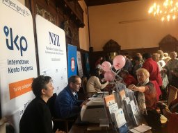 Obchody Światowego Dnia Zdrowia, które odbyły się w Zachodniopomorskim Urzędzie Wojewódzkim, okazały się pełnym sukcesem, także frekwencyjnym, co widać na zdjęciach poniżej. Z możliwości wykonania prostych badań profilaktycznych skorzystało ponad 200 osób! Pracownicy Wojewódzkiej Stacji Sanitarno-Epidemiologicznej, studenci medycyny i stomatologii uwijali się bez chwili przerwy, wykonując badania, testy i przeglądy. Zachodniopomorski Oddział Narodowego Funduszu Zdrowia wydawał na miejscu Europejską Kartę Ubezpieczenia Zdrowotnego, z czego skorzystało prawie 70 osób! Seniorzy stowarzyszeni przy Zachodniopomorski Oddziale Okręgowym Polskiego Czerwonego Krzyża, Klub Seniora działający przy Domu Kultury na Skolwinie oraz studenci 2. roku Analityki Pomorskiego Uniwersytetu Medycznego dowiedzieli się, co to jest system e-zdrowie, w szczególności zaś, na czym polega e-recepta i jak założyć Internetowe Konto Pacjenta. Podczas spotkania na Sali Owalnej można się było zapoznać z elementami kampanii Ministerstwa Zdrowia "Planuję długie życie", opartej na zasadach zdrowego stylu życia, odwołujących się do prewencji i profilaktyki. Zostały także zaprezentowane spoty Państwowej Inspekcji Sanitarnej poświęcone dopalaczom i zagrożeniom, jakie stanowią dla zdrowia i życia, w szczególności młodzieży. Powodzeniem cieszyły się konkursy i zagadki związane z Europejskim Numerem Alarmowym 112, a także szkolenie z zasad udzielania pierwszej pomocy przedmedycznej, przygotowane przez Komendę Wojewódzką Państwowej Straży Pożarnej w Szczecinie.