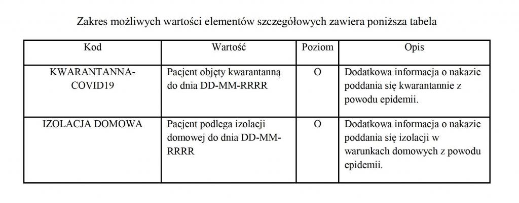 W związku z wprowadzeniem dodatkowej informacji o izolacji domowej, zakres elementu "informacja_dodatkowa" został rozszerzony o nowy kod - "IZOLACJA DOMOWA". Szczegóły dotyczące opisu elementu zawarto poniżej.