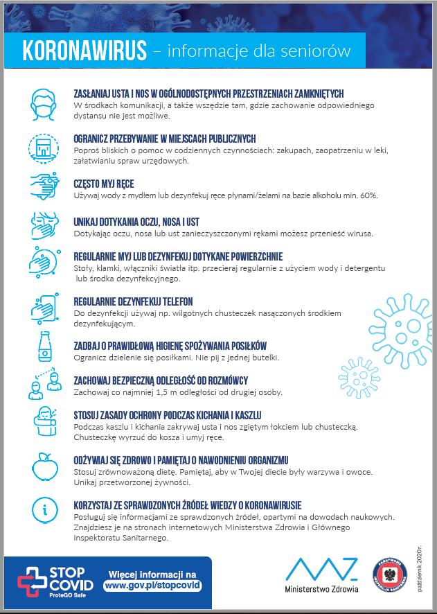 Plakat Koronawirus, informacje dla seniorów